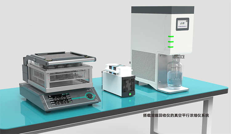 “干式”低温冷凝——溶剂回收更高效 APE 系列不仅可以选择传统的冷却循环水机搭配玻璃冷凝器对溶剂蒸汽进行冷凝回收,还可以选配 eSR220S 溶媒回收仪对溶剂蒸汽进行高效冷凝回收,溶媒回收仪采用“干式”低温冷凝技术,无需使用冷却循环液,-20℃低温下对溶剂蒸汽直接进行冷凝,特别适合低沸点溶剂高效冷凝收集。