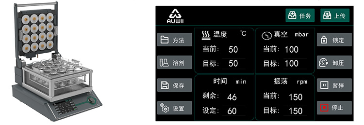 网络版智能软件——功能更强大 APE 系列高通量真空平行浓缩仪搭载了彩色触摸屏,可以轻松实现水浴温度、真空盖板加热温度、振荡速率、真空度、工作时间等功能设置。可以选配 wifi 数据交互功能实现与实验室管理系统的对接。