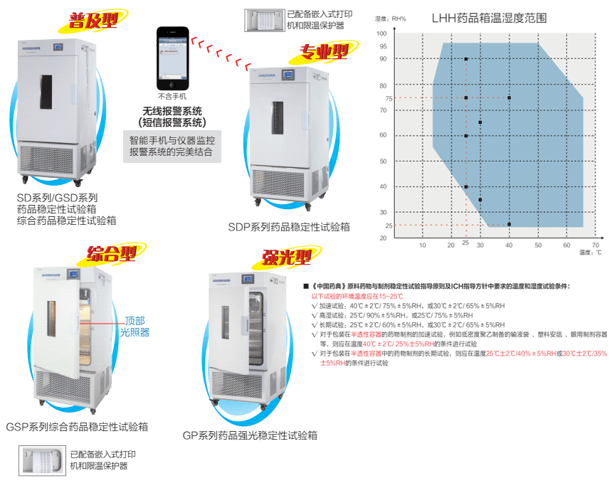 1、SD、SDP、GSD、GSP、GP标配485接口/嵌入式打印机 2、SDP、GSP标配USB接口/无线报警系统SD、GSD、GP系列选配 3、GP、GSD、GSP系列,手动无极调光,标配光照度监测仪,内置顶部光照器 4、GP、GSD、GSP系列,可选配二层光照器 5、LHH-80SD、LHH-80SDP为一组独立原装全封闭进口压缩机 |